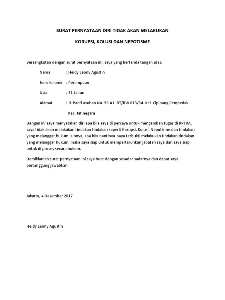 for "Contoh Surat Pernyataan Diri Bermaterai : Surat Pernyataan Diri Tidak Korupsi"